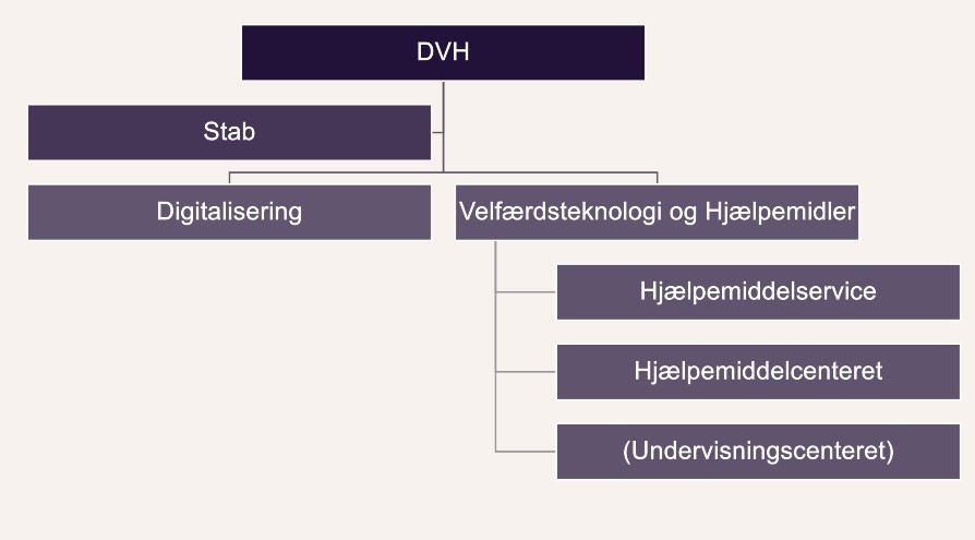 Velfærdsteknologi & Hjælpemidler er en af to afdelinger i DVH, Digitalisering, Velfærdsteknologi og Hjælpemidler, Sundhed og Omsorg, Aarhus Kommune.