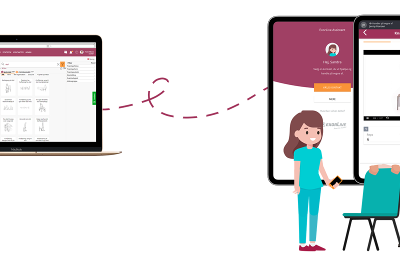 Aarhus Kommune har gennem flere år arbejdet med træning via Exorlive. Tidligere var det imidlertid ikke muligt for fysioterapeuten at følge træningen online. Det er muligt nu med Exorlive Assistant, og det giver mere fleksibilitet i arbejdsgangene. Derudover skal man ikke længere holde styr på udprintede træningsprogrammer, der nemt kan blive væk.